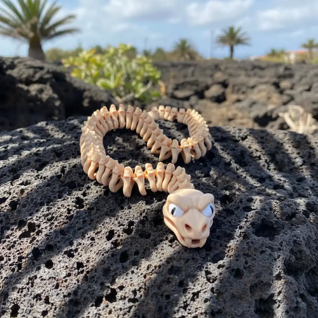 Direkt aus den Kanarischen Inseln 🌴 kommt diese beeindruckende, bewegliche Skelettschlange. Mit einer Länge von 62 cm ist dieses 3D-gedruckte Meisterwerk ein echter Hingucker.