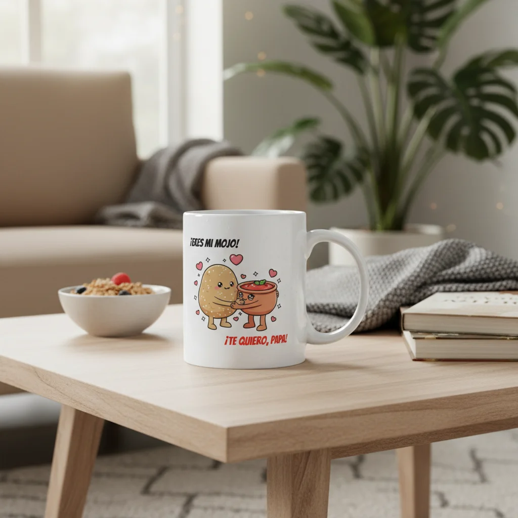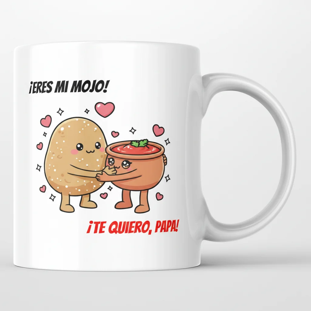 Diseñada con cariño en las Islas Canarias, esta taza no es solo un recipiente para tu café, ¡es una declaración de intenciones! Con la frase «¡Eres mi mojo!», le dices a esa persona especial que es la chispa que da sabor a tu vida.