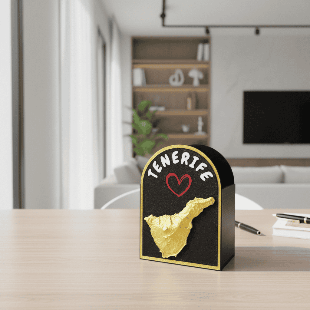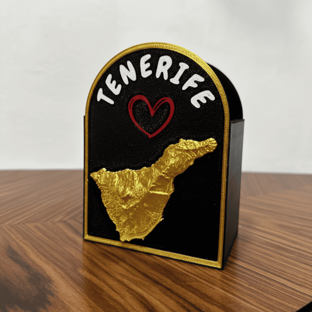 • 🇮🇨 Diseño exclusivo con el relieve de Tenerife en acabado dorado.