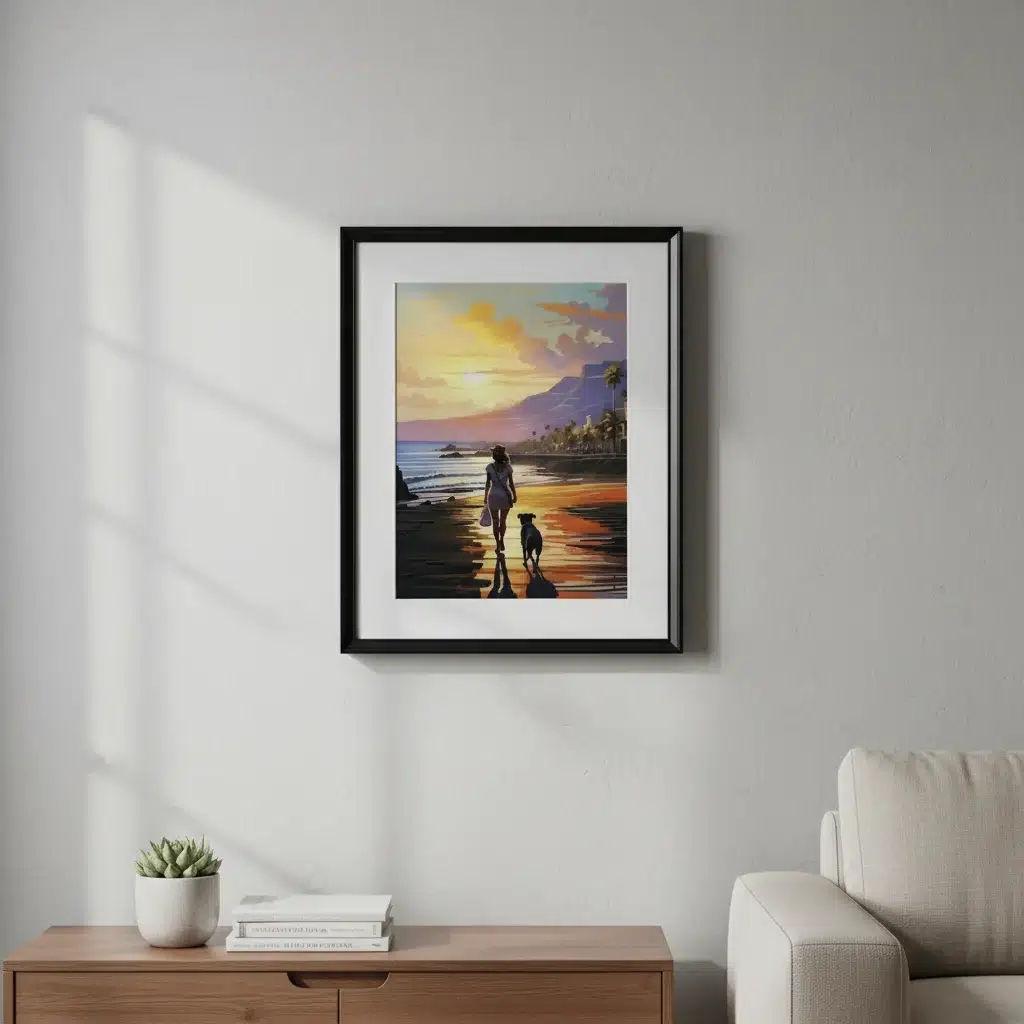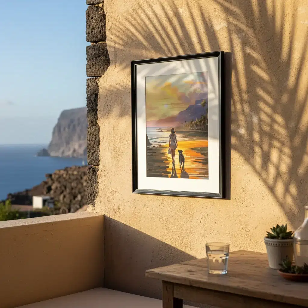 ¡Captura la magia de nuestras costas! 🌅 Una obra digital serena que evoca la paz de un atardecer canario. 🐕🏝️